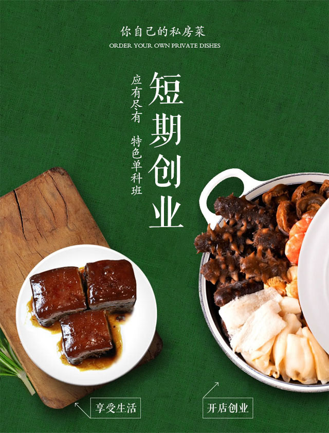 针对广大学员不同需求,我们网罗天下美食,为广大学员量身订制自己的私房菜!你想学的这里都有!无论是为了享受生活、还是为了创业当老板,这里都是你的不二选择!