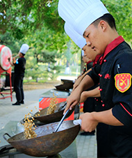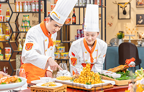 导师训练,市场流行菜强化训练;现代各类大型宴席菜肴制作;各种喜庆宴席设计与制作;酒店、厨房情景实战演练;餐饮专题讲座。