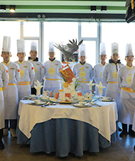 市场流行菜、特色卤水及凉菜制作;花色拼盘强化训练;大型艺术整雕;食品雕刻强化练习;中式面点制作;老师讲座; 强化训练; 《烹饪原料学》、《烹饪工艺美学》、 《中、西点基础知识》。