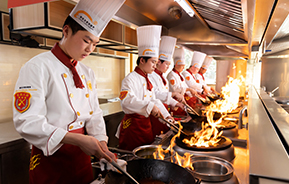 熟练掌握厨房基本技能(刀工、勺工);各式传统菜肴制作;烹饪原料加工、味汁调制;食品雕刻基础训练;菜系专题讲座、老师讲堂;军训;《烹饪工艺》《烹饪概论》。